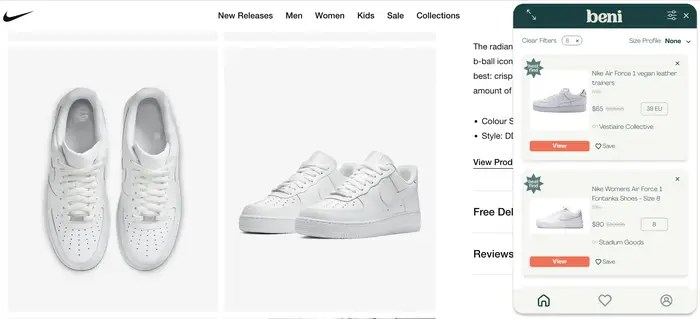 Beni offers a browser extension that makes secondhand shopping more accessible. The company acts as an intermediary by running a search of a desired item on resale webistes like The RealReal, Rent the Runway, Vestiaire Collective, eBay, Kidizen, etc. and presents viable used options to the desired item. The goal is to make it simple for users to find and buy secondhand items that offer better value and a smaller environmental footprint. Although the inventory for used items is already online, users find it difficult to know what websites to search at, and it tends to be time consuming and tedious, and ultimately has the effect of turning consumers away from purchasing used items. Beni currently offers a Chrome browser extension. The company makes a commission off every purchase made on a partner resale platform. Beni also allowsusers to see what items are authenticated, returnable, or have low fees before clicking a referral link to purchase.