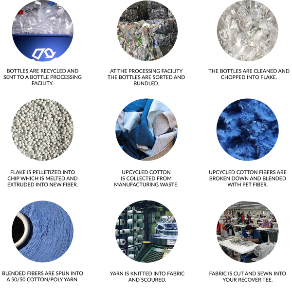 Recover brands has created a means to recycle old clothes, by creating a take-back program for customers to recycle their old T-shirts. The company utilizes the fibers recovered from this post-consumer waste in addition to plastic waste from single-used recycled bottles and creates a 50/50 part cotton/yarn fiber. The company creates sustainable clothing from these recycled/waste products and also creates awareness and demand for a new type of clothing product. The company does all its manufacturing in Central America.