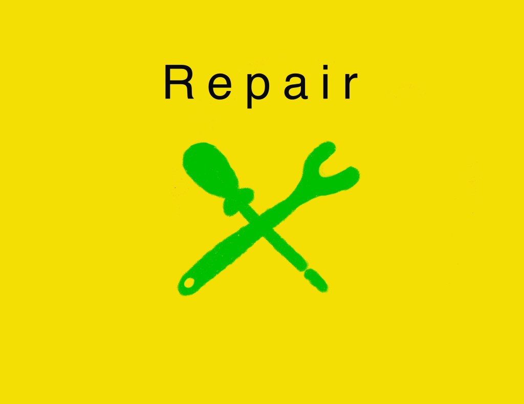 Repair refers to elongating the life of a resource by making repair of the resource or material accessible and cost-effective.